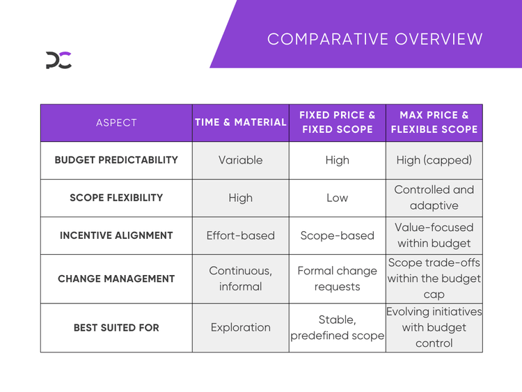 Model Comparison: Fixed Price vs Max Price & Flexible Scope vs Time & Material